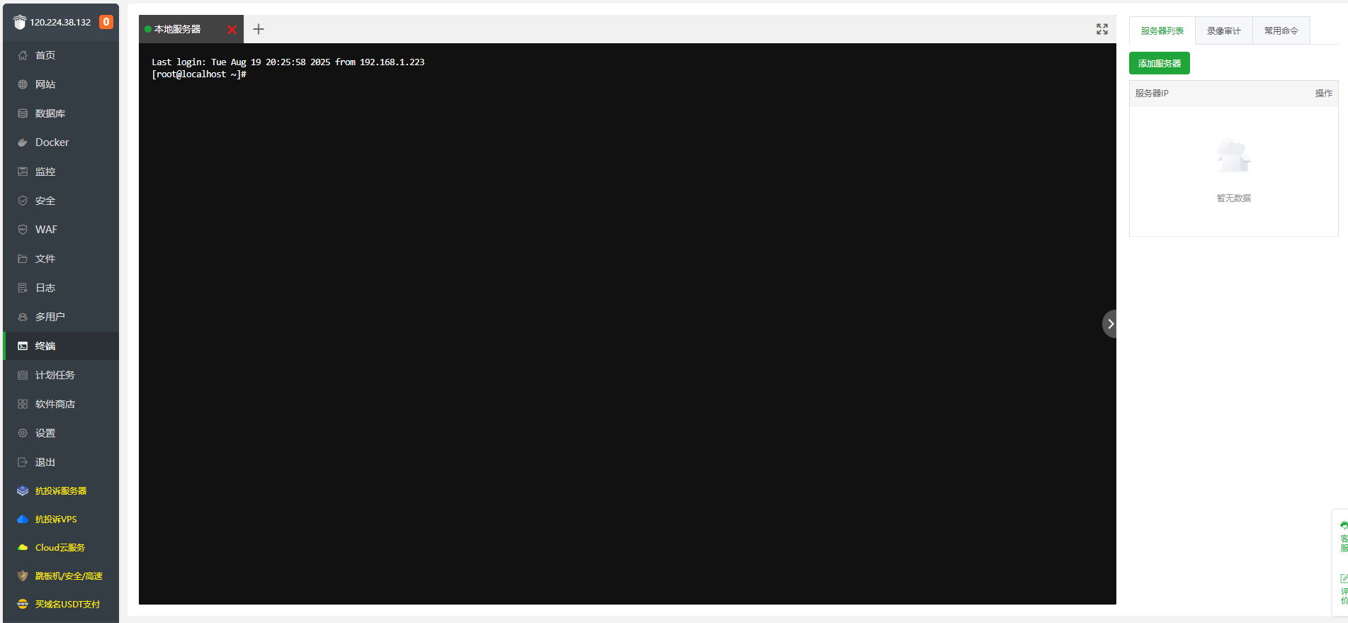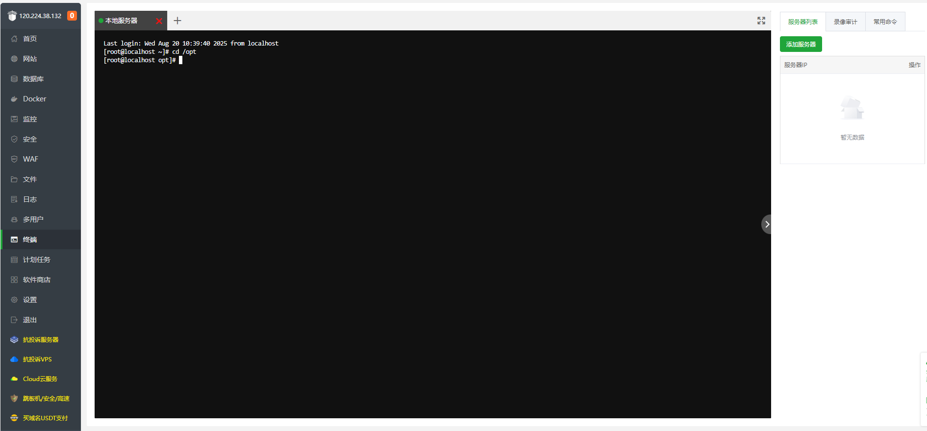 登录宝塔面板使用内置的终端或使用SSH终端执行命令: