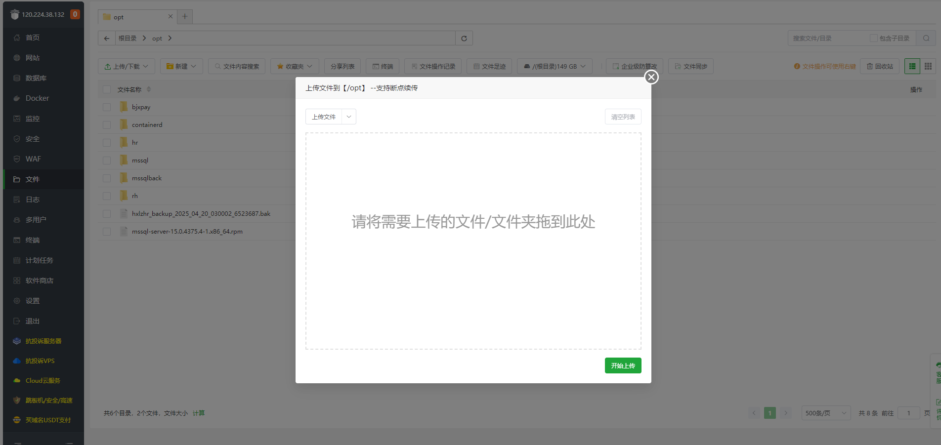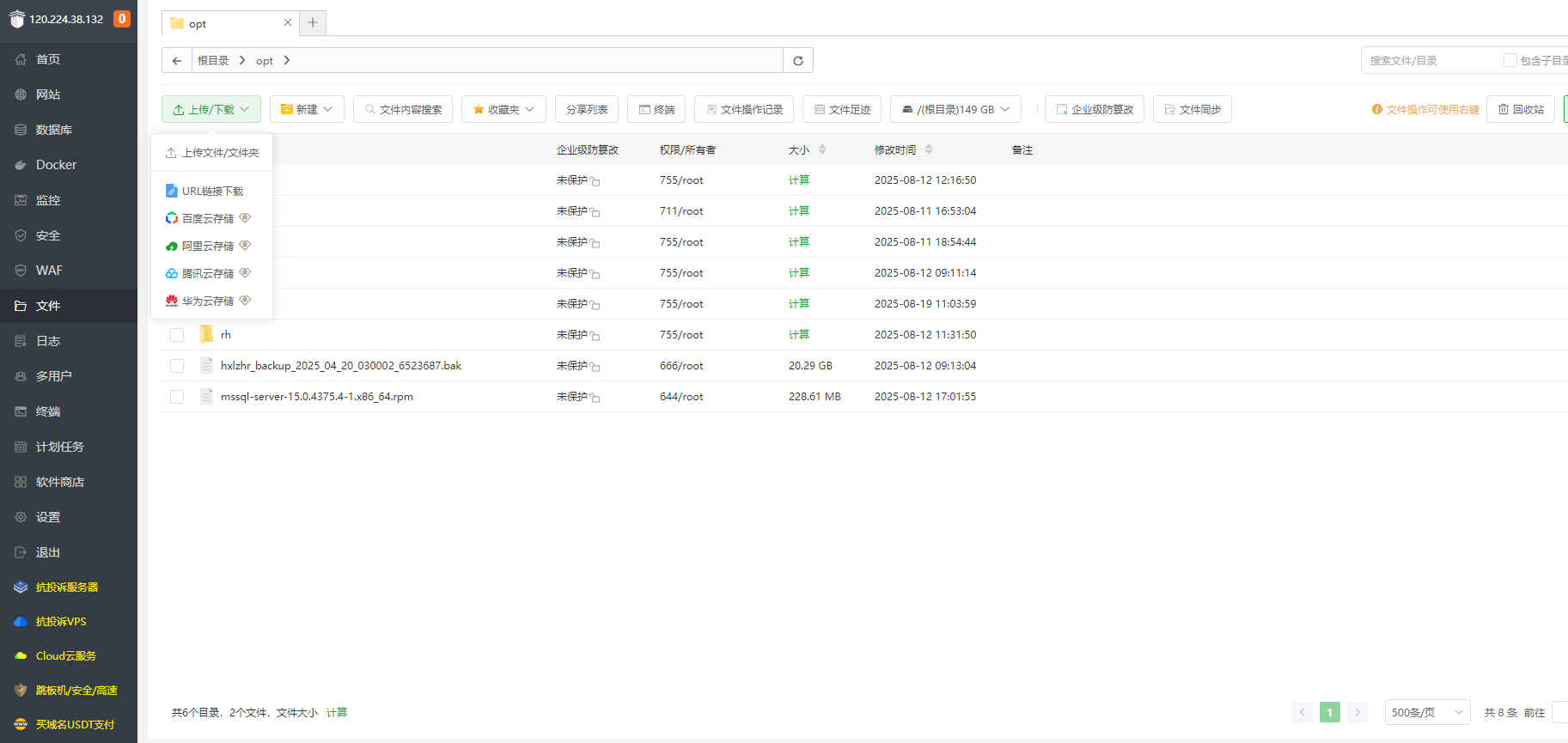 - 5.1 把.BAK文件上传或下载到/opt文件夹下