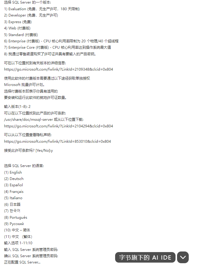 rpm -ivh mssql-server-15.0.4375.4-1.x86_64.rpm --replacefiles3.5 RPM包安装完成之后安装并配置MSSQL并按下图进行配置