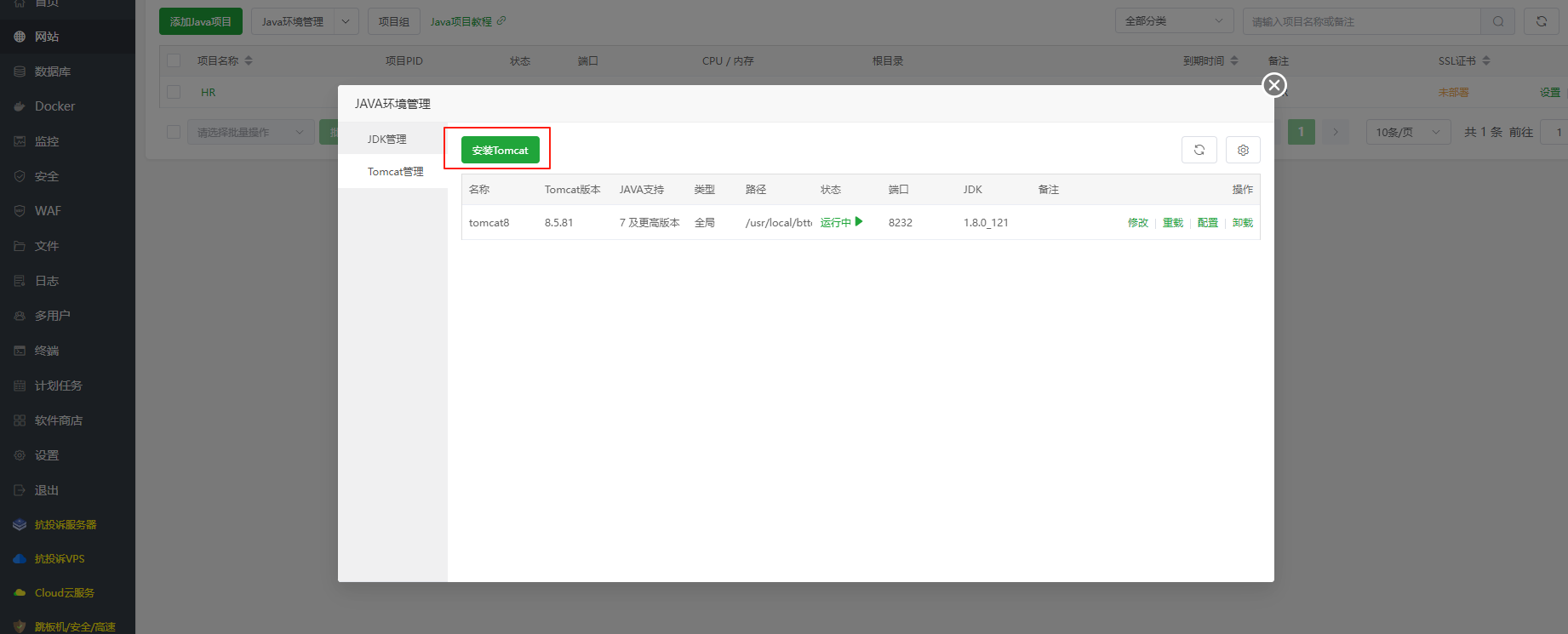 - 4.2 点击Tomcat管理,点击安装Tomcat