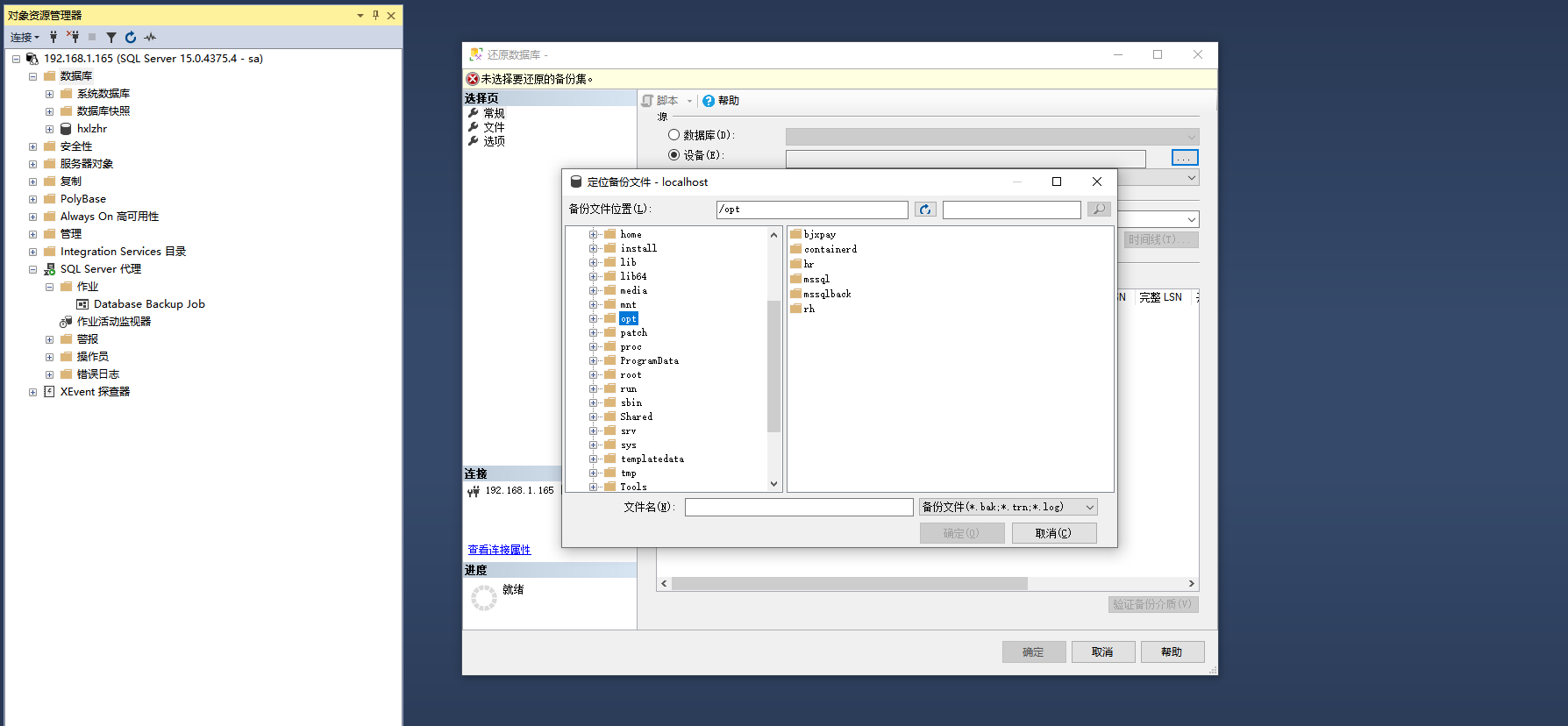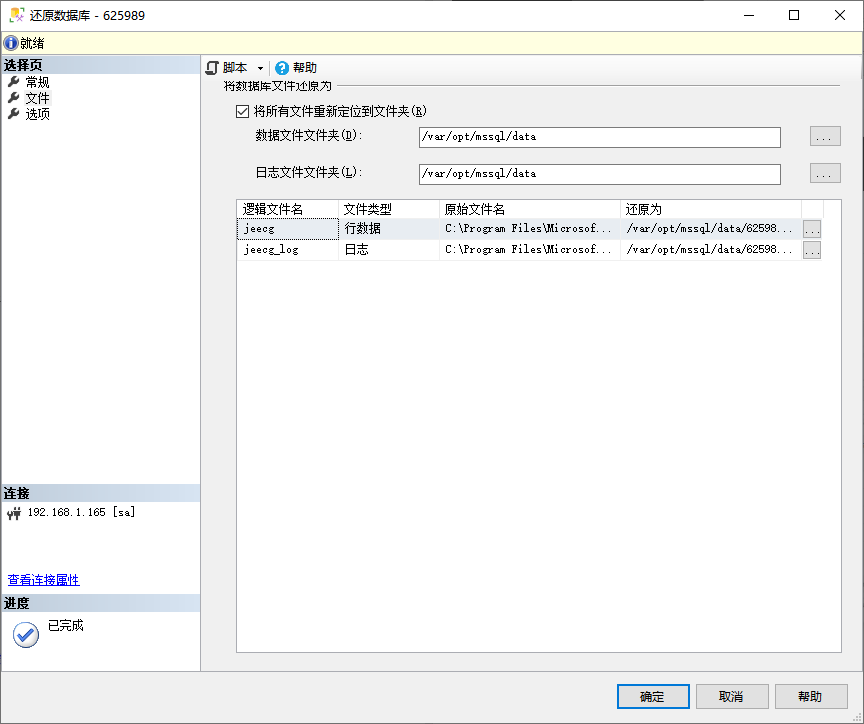 如果是Linux备份或非本机备份的需要在还原的时候重新选择一下数据库路径,不然会导致数据库还原不了。