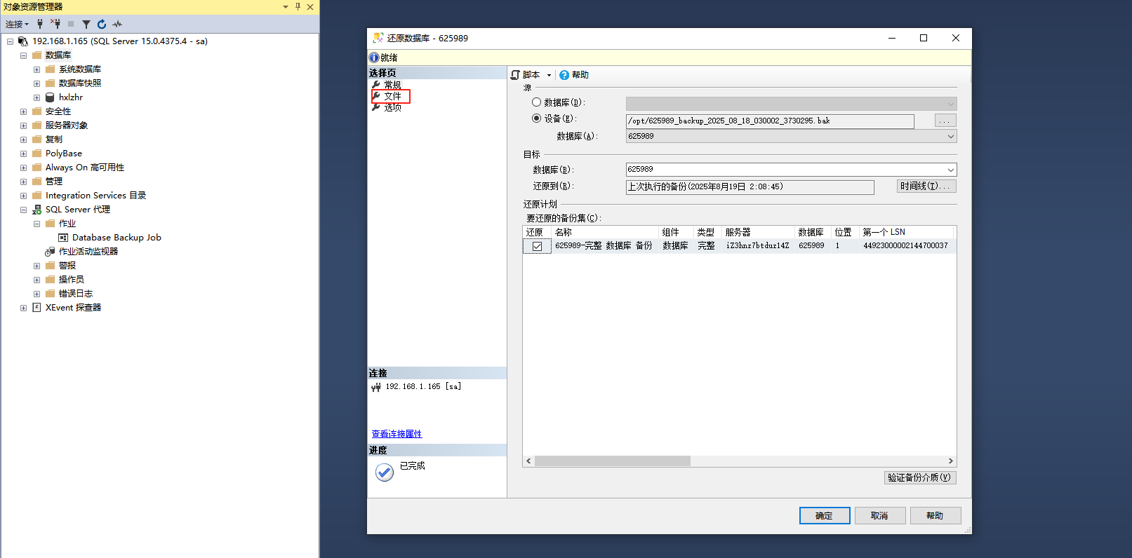 - 5.2 打开SSMS管理工具连上数据库进行备份