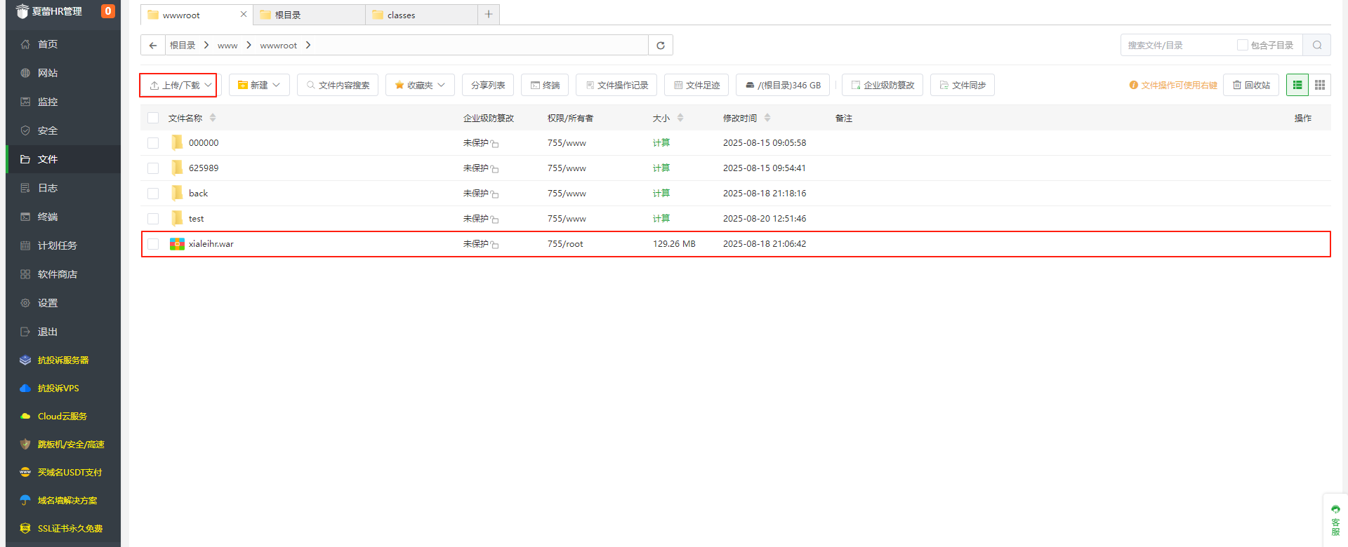 6.1 上传HR的war包到/WWW/WWWROOT目录下