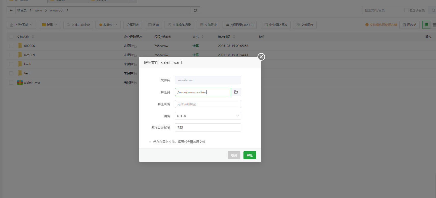 - 6.3 双击war包,解压目录选择你刚刚创建的文件夹