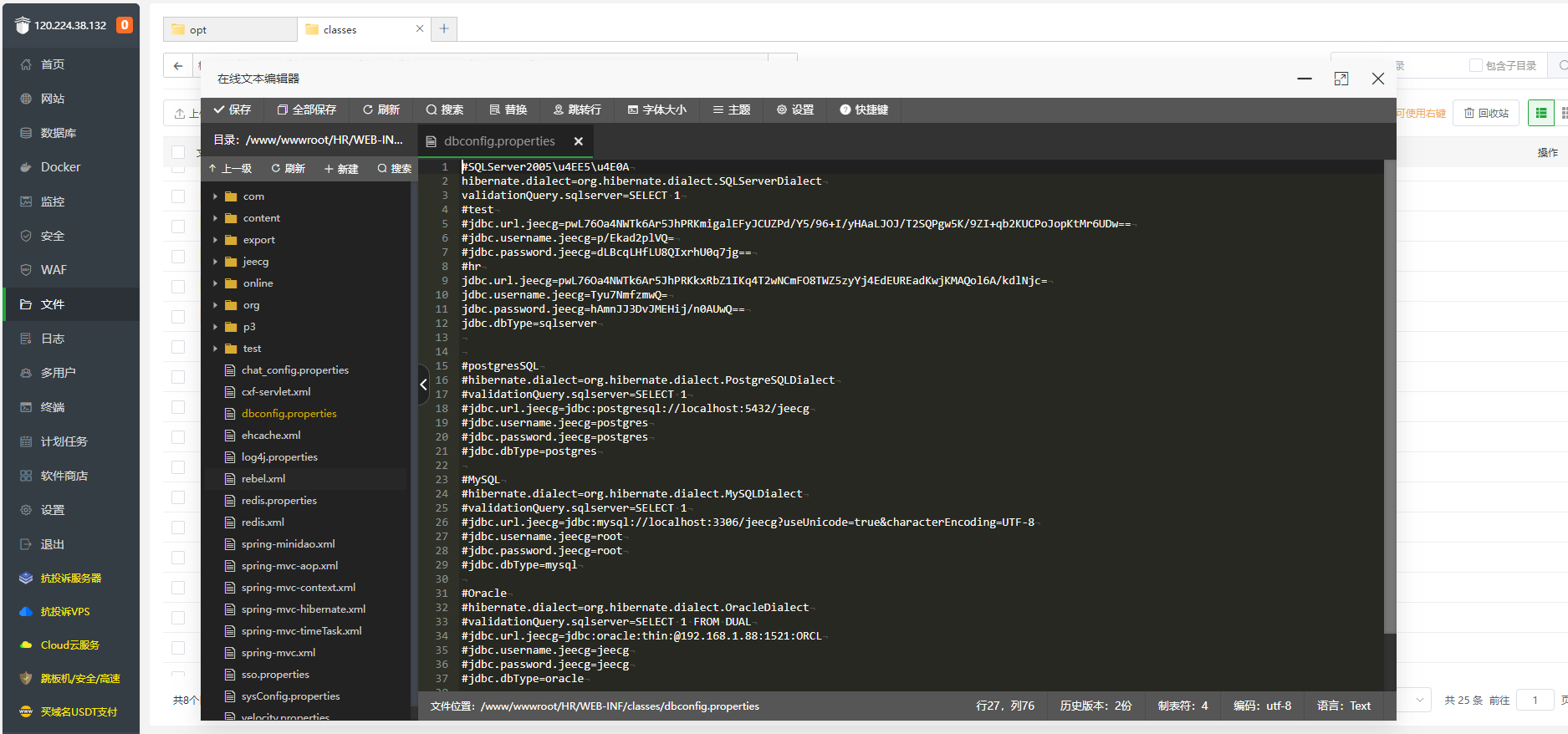 在/WEB-INF/classes里面找到dbconfig.properties进行编辑