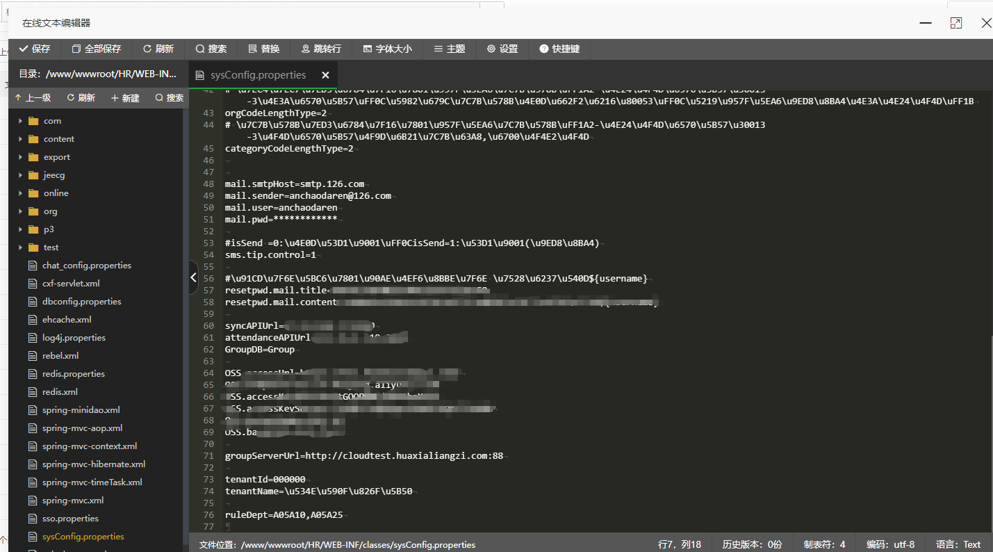 在/WEB-INF/classes里面找到sysConfig.properties进行编辑