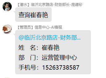 - 查询格式为:查询XXX XXX替换为你需要查询总部人员的名字