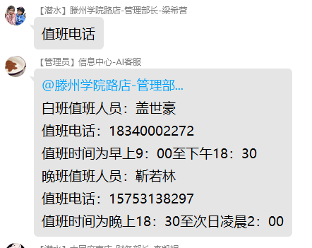 - 查询格式为:查询值班/值班电话