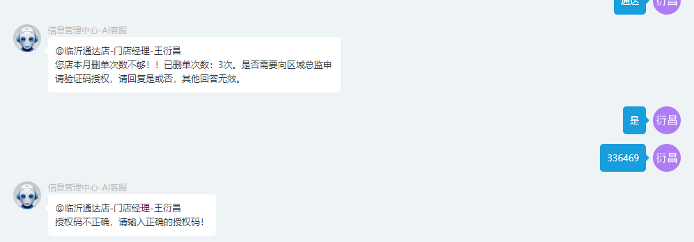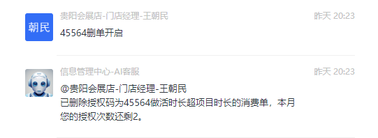 - 当出现删除消费单出现超过规定次数之后可选择区域总监授权