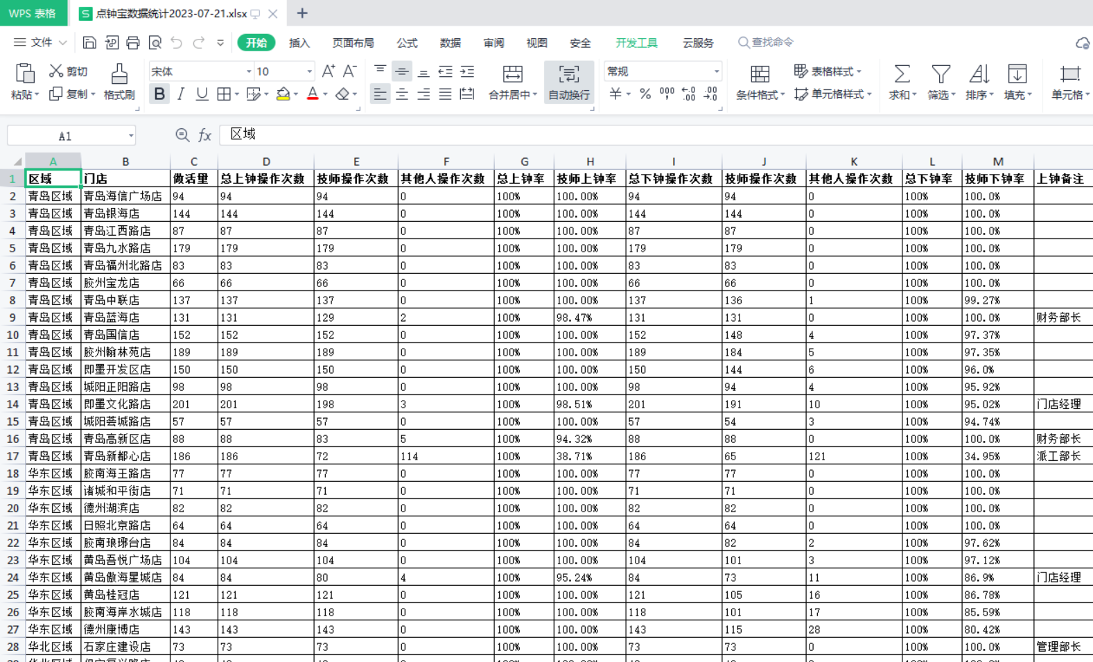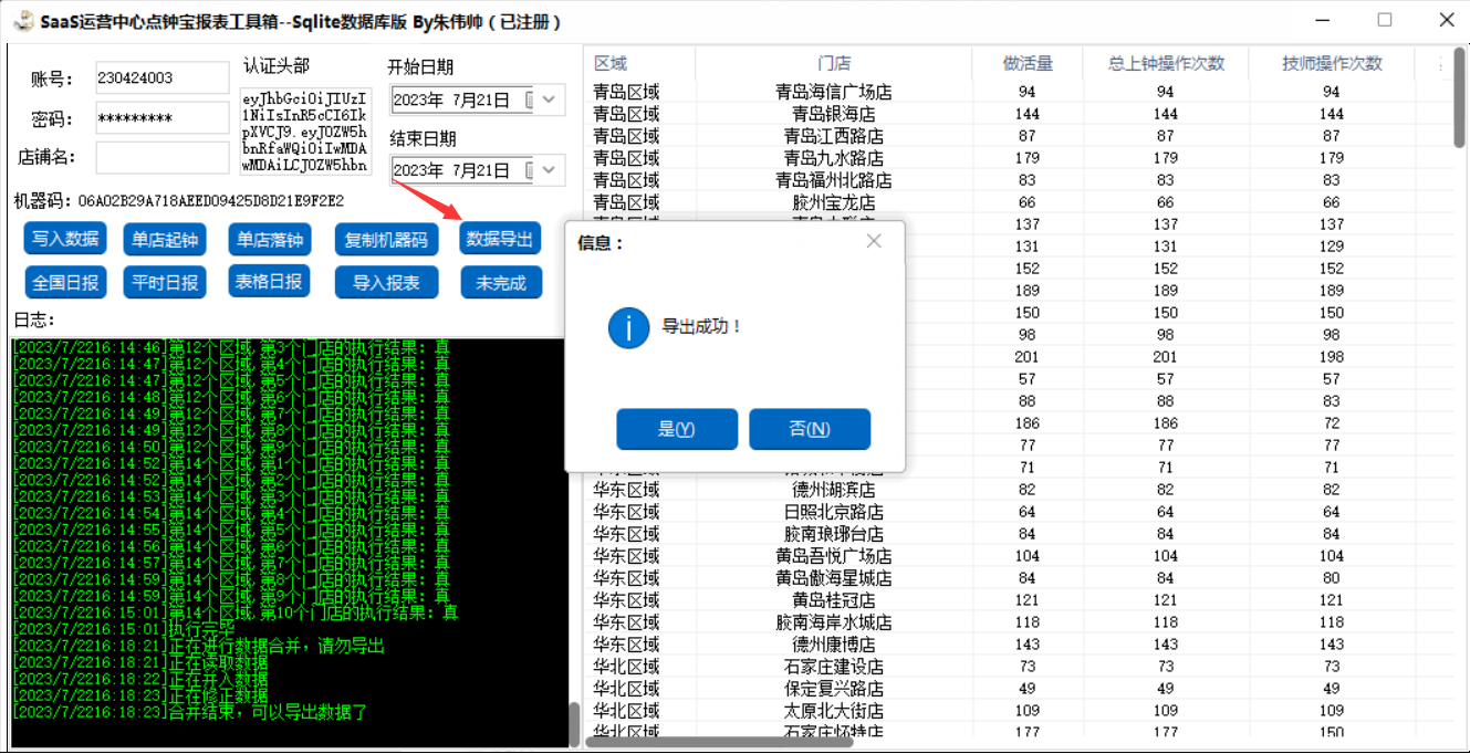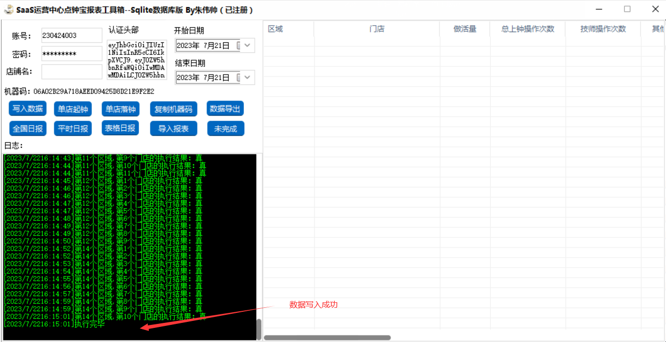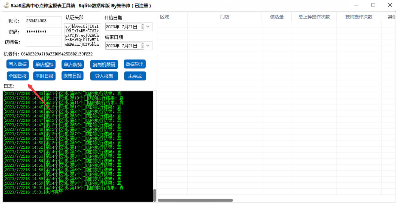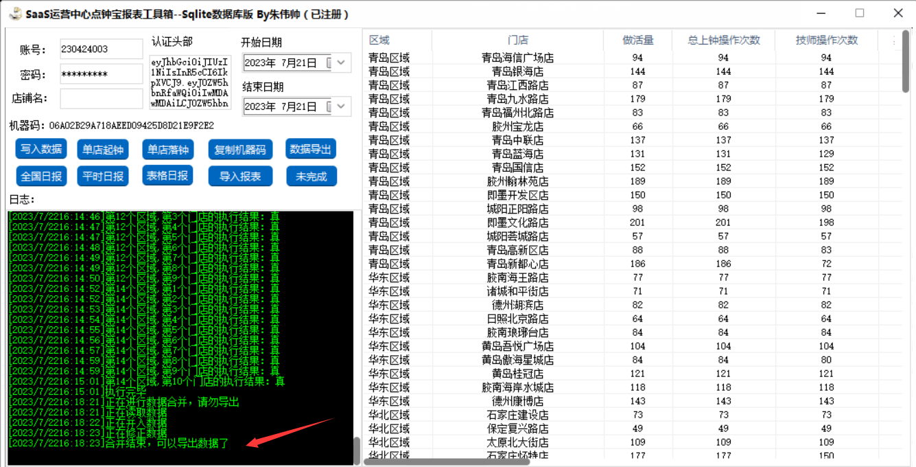 目录 搜索 展开 点钟宝工具箱简介使用说明全国日报单店铺查询常见问题更新记录 暂无相关搜索结果! 阅读次数:8 本文档使用 MinDoc 发布 全国日报 1.读取数据并写入2.全国数据查询1.读取数据并写入 账号密码输入完成之后,选好需要查询的日期然后点击写入数据就把昨日点钟宝所有数据都写入到本地数据库里面。可以进行查询操作了 单次使用只执行一次 2.全国数据查询 在数据写入完成之后可以进行查询。 点击全国日报,就会在左侧列表出现处理完成的数据。 点击数据导出就可以导出成exsl表格了 导出的表格在软件运行目录文件下 作者:朱伟帅 创建时间:2025-10-20 11:05最后编辑:朱伟帅 更新时间:2025-10-20 11:08
