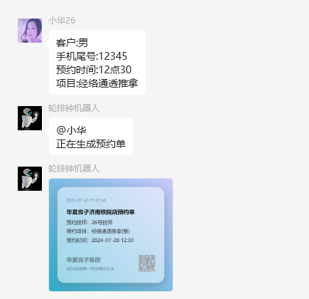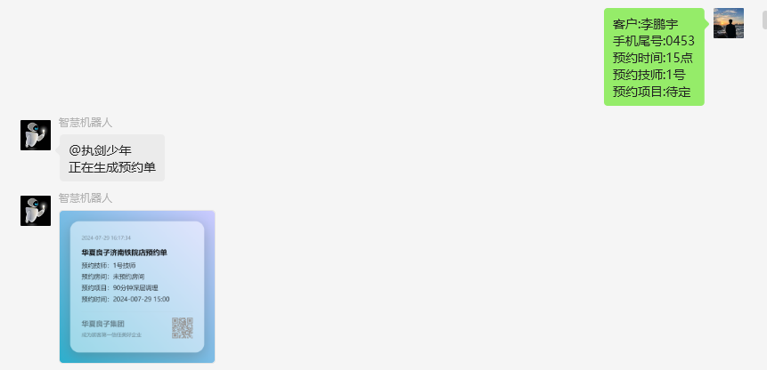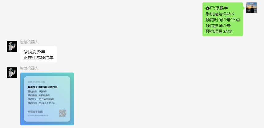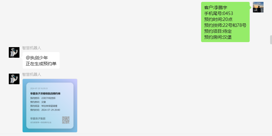 预约房间:XXXX客户:后面的XXX替换为顾客的姓名(可不为真实)