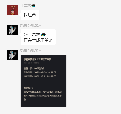 在群里面说压单或加班即可