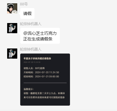 在群里面说请假即可